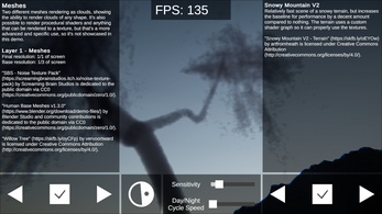 To the left, you can use the arrows to switch the cloud configuration from a few presets. They vary in amount of layers and resolution, covering a few different possible use cases. The checkbox in the middle will toggle clouds entirely, useful to check how much of an impact they have on frames.